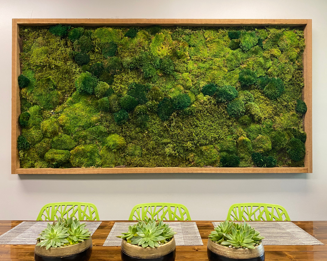 We specialize in creating custom, one-of-a-kind moss walls that elevate your brand and transform any space. Our preserved moss walls require minimal maintenance and no natural light, making them a long-lasting, visually stunning addition to both commercial and residential settings. Whether you’re looking to enhance your home or business, our moss walls bring beauty, creativity and sustainability to your living space.